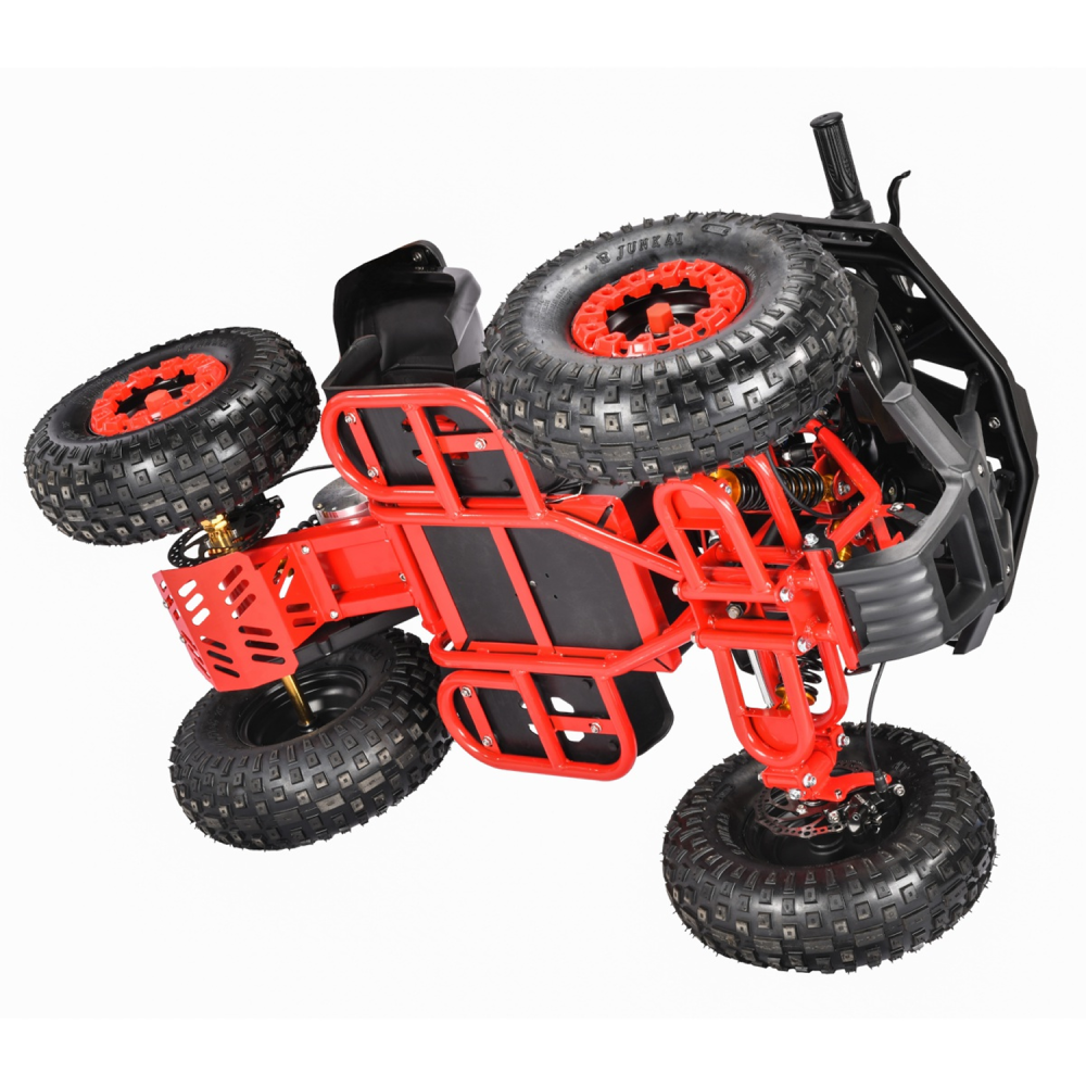 Первое, что бросается при знакомстве с квадрациклом – вездеходные колеса, большие, с глубокими протекторами. Кажется, для них не существует препятствий. Широкое вместительное сиденье, мощный бампер и решетка, напоминающая багажник.