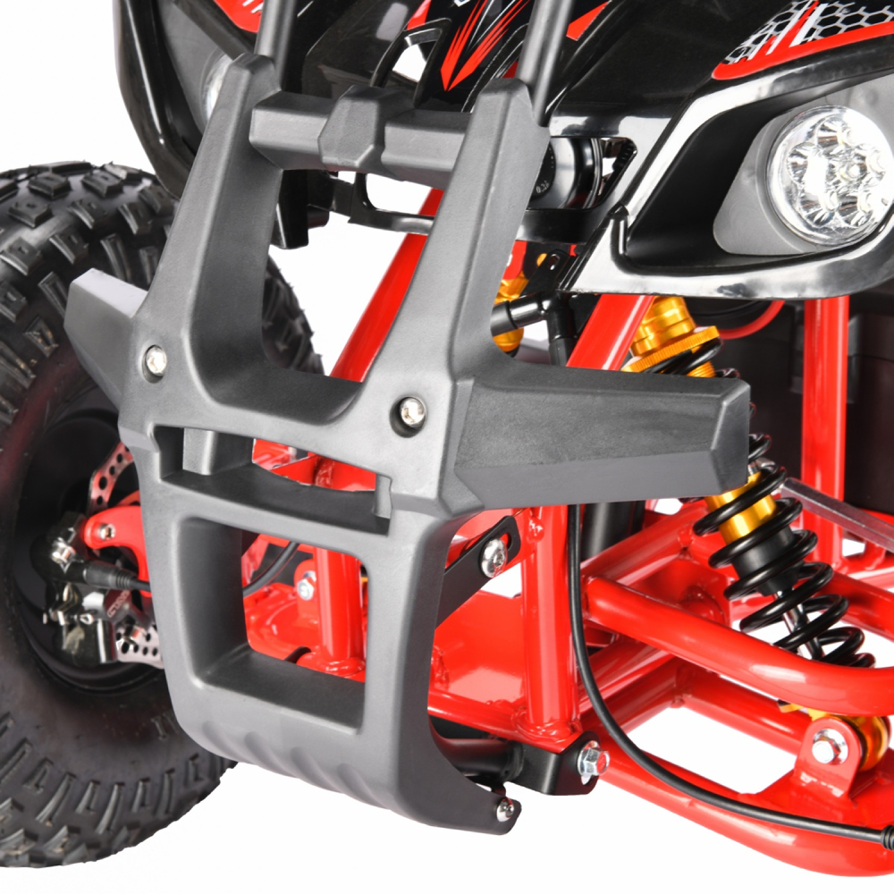 Квадроцикл представлен полной комплектацией, рассчитан на возрастную категорию от 3 до 9 лет. При мощности двигателя 1500 Вт способен развивать серьезную скорость – до 49 км/час. Продолжительность пути на одной подзарядке составляет 50 км. Максимальная грузоподъемность – 95 кг.