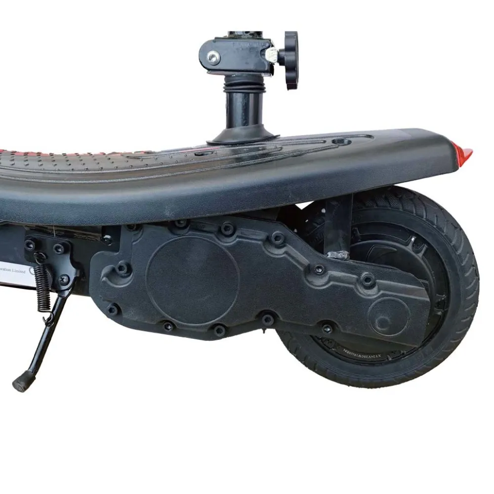 Модель весом 20 кг рассчитана на грузоподъемность до 100 кг. Характеристики допускают эксплуатацию техники подростками. Конструкция рамы изготовлена из прочной и долговечной стали, складывается до минималистичных размеров. Не деформируется при максимальных нагрузках и негативном воздействии погодных факторов.