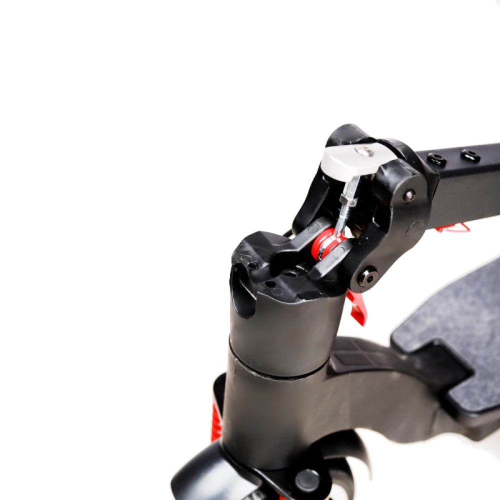 Электрический самокат Artway AS-2410 весит около 12 кг и его можно с легкостью переносить или устанавливать в багажнике автомобиля. В сложенном состоянии он занимает мало места. Складывать можно в два приема, сначала ослабьте рычаги, они обычно плотно прикреплены к стойке. Далее необходимо нажать на подставку на платформе.