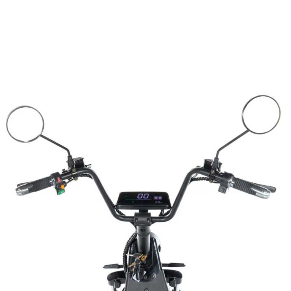 Электробайк – безопасная в эксплуатации техника. Наличие жк-монитора позволяет отслеживать скоростные характеристики, заряд АКБ и другие параметры. Качественная тормозная и амортизационная система обещают своевременное торможение с остановкой, отсутствие дискомфорта при преодолении проблематичных участков. Несмотря на безопасность двухместного электробайка производитель настаивает на покупки дополнительных аксессуаров защиты для ездока. Надеемся, вам понравилась модель электробайка. Ждем ваших звонков!