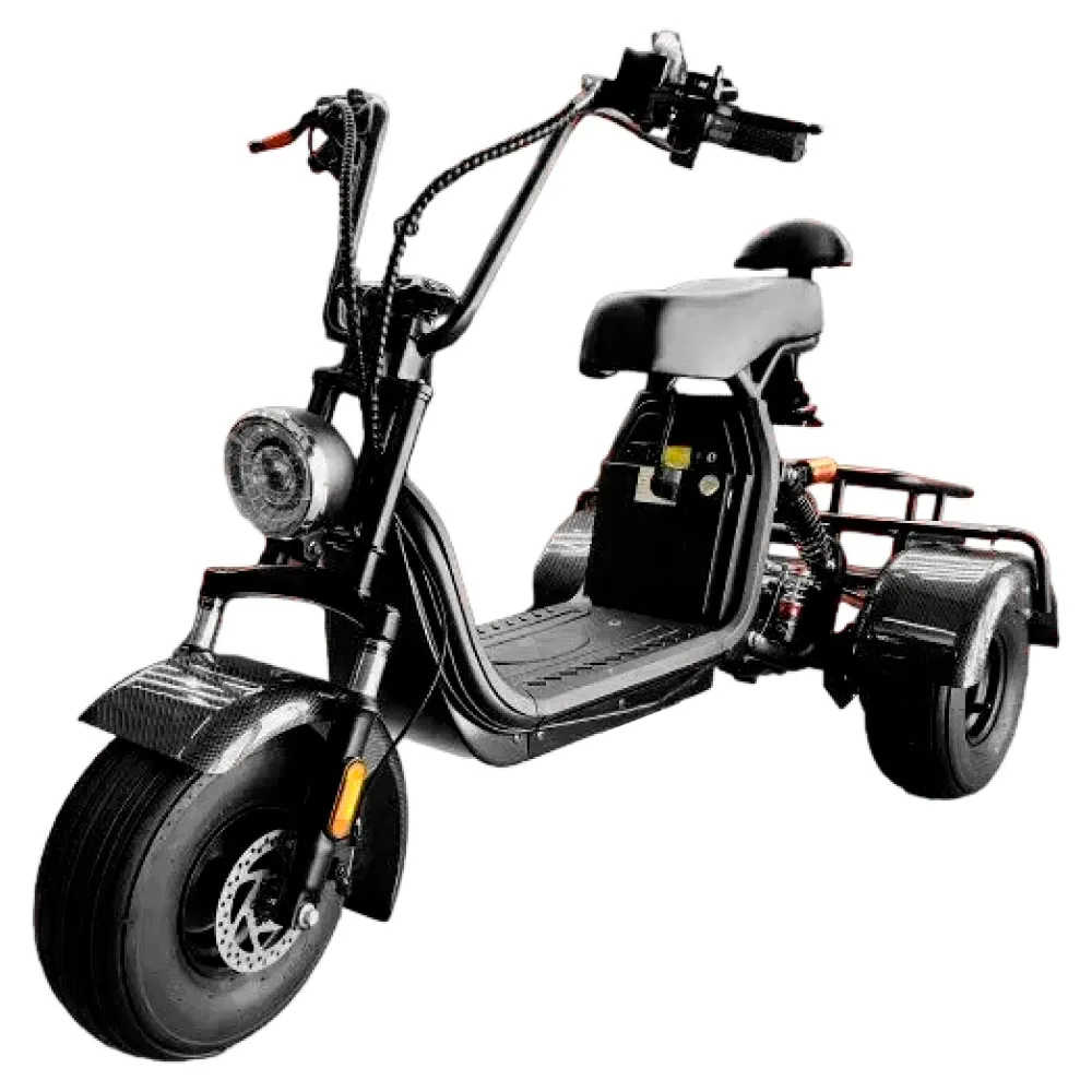 CityCoco GT X5 Trike 1500W 15Ah 48V карбон - это идеальный выбор для тех, кто желает объединить мощность, дизайн и комфорт. Он оснащен мощным электродвигателем на 1500 Вт и батареей на 15 Ач, что позволяет ему разгоняться до 45 км / ч и проезжать до 40 км на одном заряде.