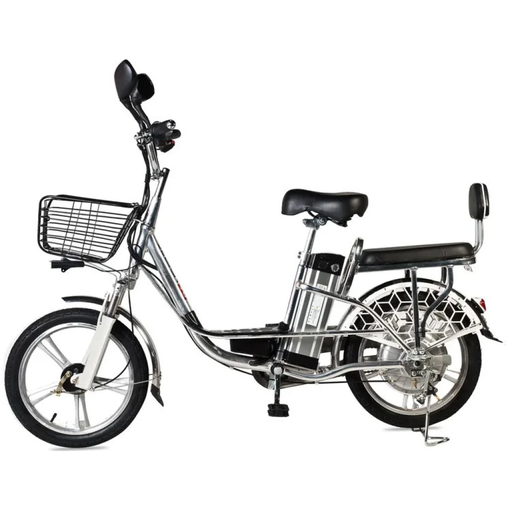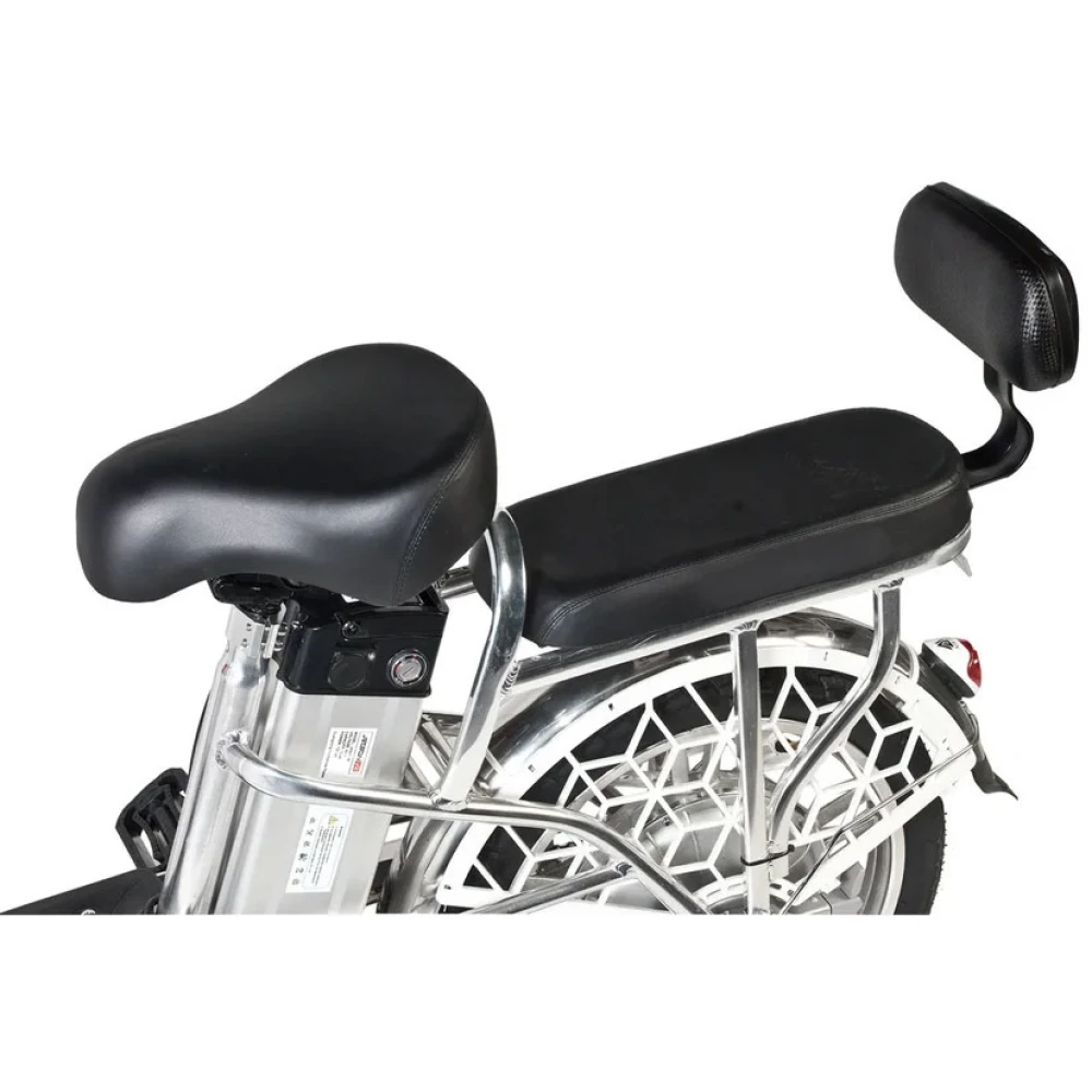 Модель рассчитана на водителя и пассажира. Оснащена передней вместительной корзиной, удобным мягким водительским сиденьем и широким сиденьем со спинкой для пассажира. Повторяющие анатомические формы тела сиденья снимают нагрузку на позвоночник, дают возможность комфортного длительного путешествия. Надеемся, вам понравился наш электровелосипед. Ждем ваших звонков!