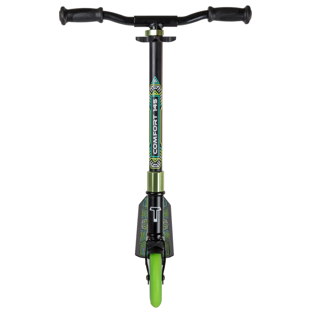 Самокат Tech Team COMFORT 145R 2022 черно-зеленый понравится необычным дизайном и заметностью. Техника рассчитана для езды по городской местности и парковой зоне. Брендовые логотипы и особое отношение к оформлению по достоинству были оценены пользователями. Приобрести модель выгодно, получить бесплатную консультацию предлагает наш интернет-магазин.