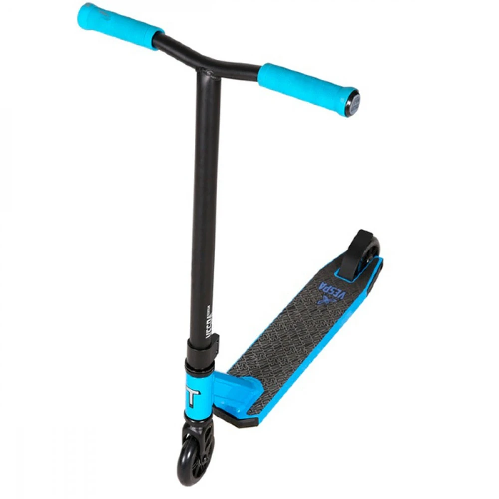 Самокат VESPA 2020 создан для юных экстремалов 4-5 лет или райдеров маленького роста. На таком самокате удобно разучивать новые трюки, но стоит воздержаться от прыжков на трамплине и рампе. Руль на самокате VESPA 2020 сделан в «Т» – образной форме и выполнен из стали, но в отличие от других моделей не регулируется. Его высота 50 см, ширина 41 см. Грипсы резиновые для удобного захвата руля руками. На самокате стоит рулевая система HIC на 2-х болтах. Дека выполнена из алюминия, с антискользящим покрытием по типу шкурки. Также как и размеры руля, размеры деки меньше стандартных: длина - 45 см и ширина - 10 см. Благодаря маленьким габаритам на самокате стало удобнее кататься малышам. Над задним колесом установлен надежный тормоз. Заднее и переднее колеса диаметром 10 см и состоят они из  полиуретана. Ступица выполнена из пластика, так как этот материал прочнее для исполнения трюков. Самокат VESPA 2020 производится в черном, красном, голубом и синем цветах. Вместе с покупкой самоката, родителям следует приобрести защитные элементы для ребенка.