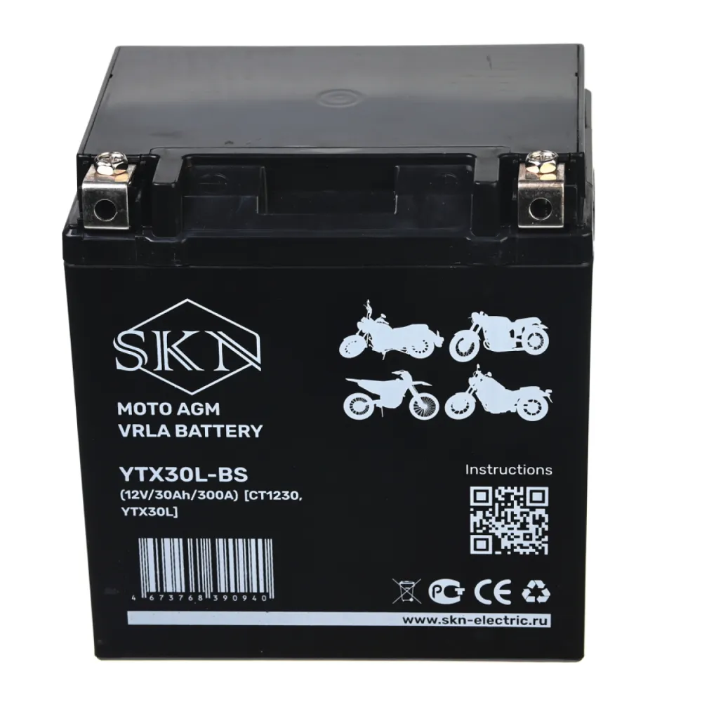 Аккумулятор стартерный для мототехники Rutrike SKN YTX30L-BS (12V/30Ah/300A) [CT 1230, YTX30L]