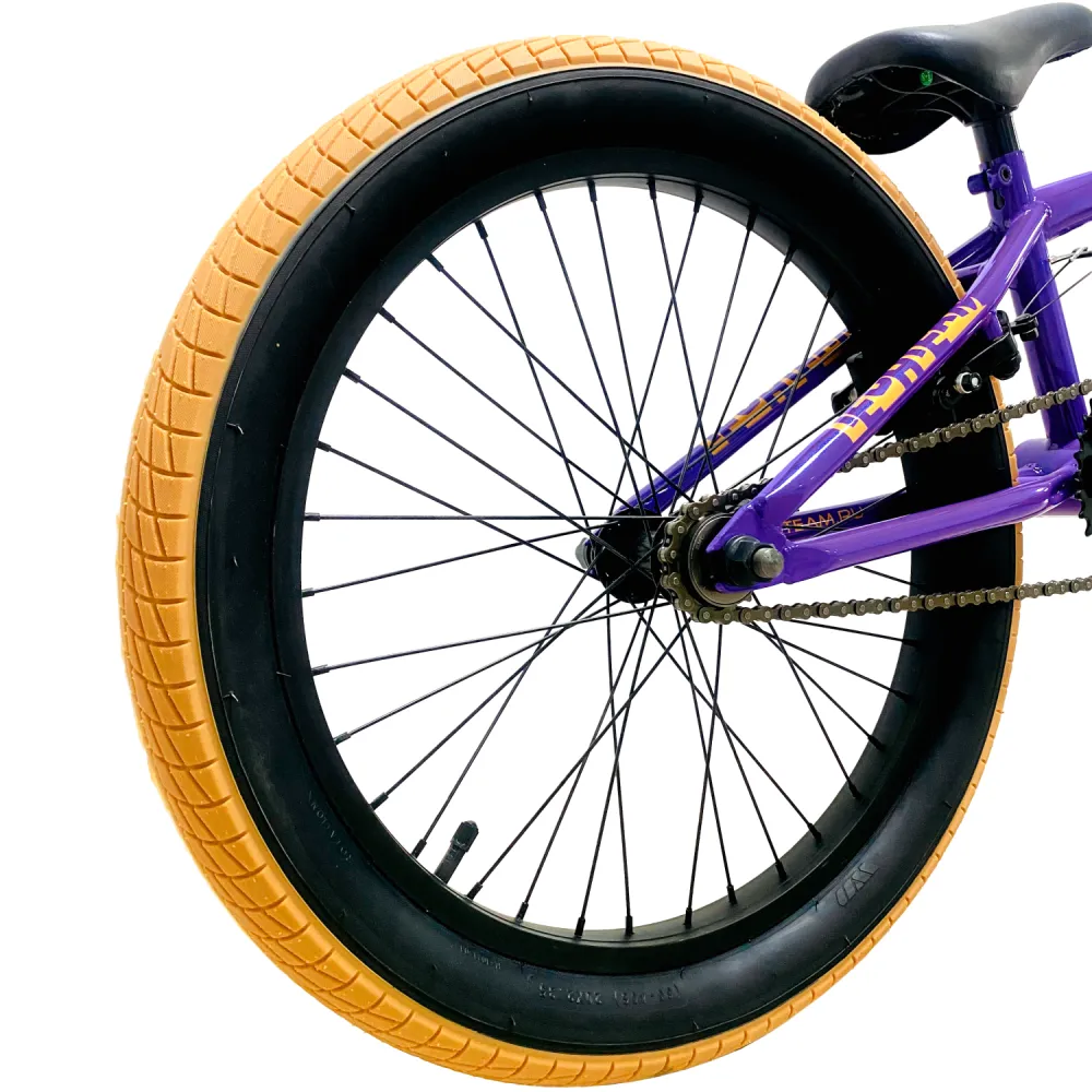 20-дюймовая колесная часть оснащена надежными покрышками, отлично сцепляемыми с разными поверхностями, накатистыми и послушными. В совокупности с другими элементами управления райдер может рассчитывать на максимальный разгон, что важно для качественных прыжков. Торможение проводится с помощью брендовых тормозов. Основной рычаг управления размещен на видимой часть руля.